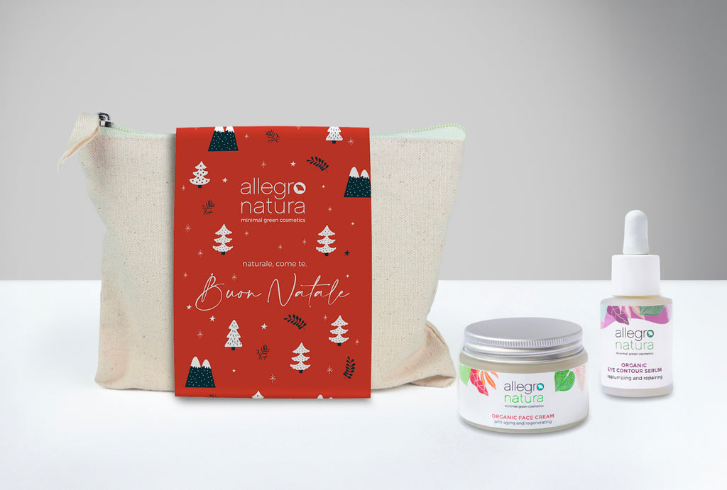 A Natale vorresti fare un regalo che metta al centro la skincare antiage, ma che sia anche ecologico e sostenibile? Sei nel posto giusto! All'interno della nostra pochette in cotone grezzo troverai: Crema Viso Bio Anti-age e Siero Viso Bio Contorno Occhi